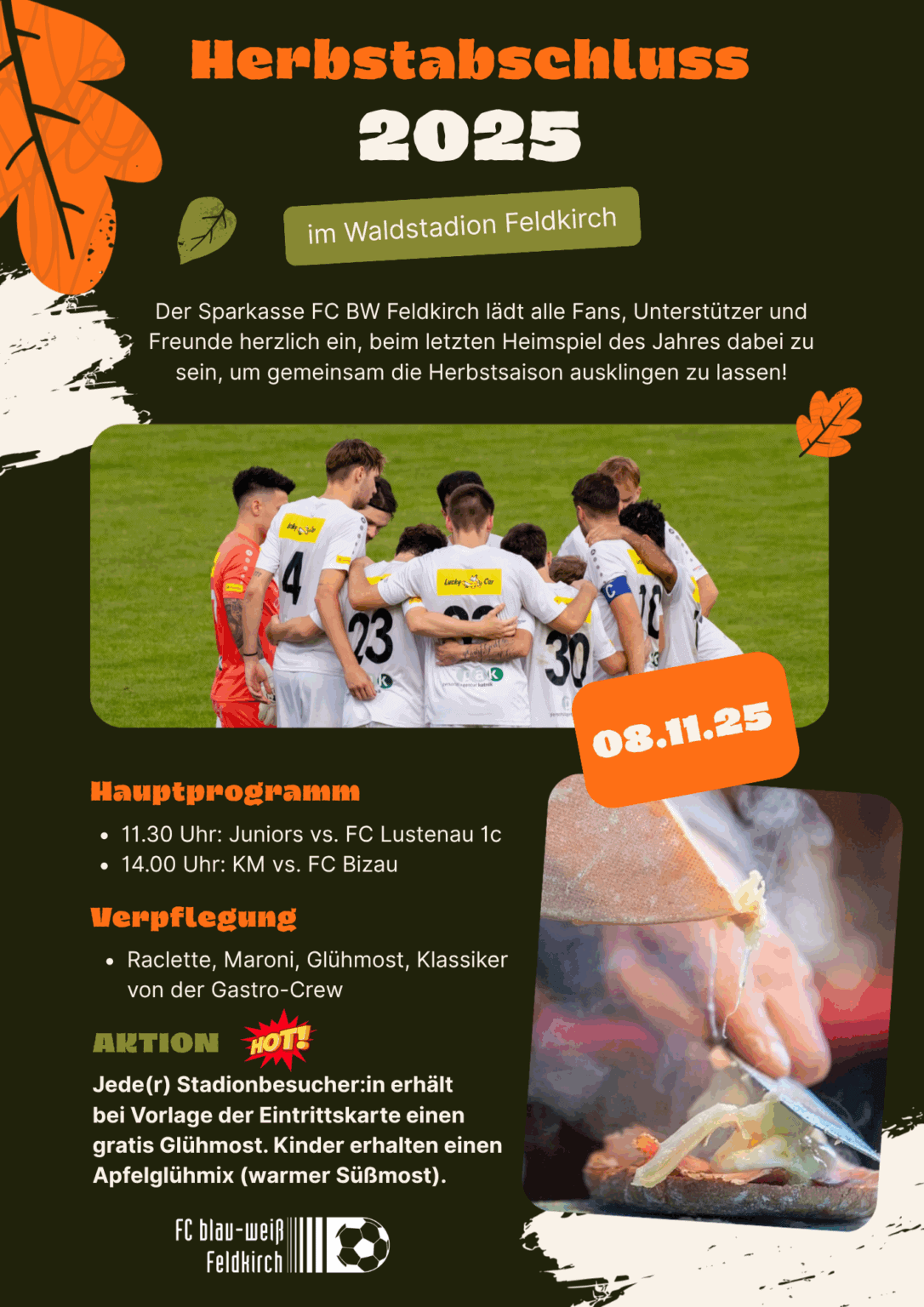 Kommt vorbei, genießt den Herbst im Waldstadion und unterstützt unsere Teams beim Jahresabschluss – der Sparkasse FC BW Feldkirch freut sich auf euren Besuch!