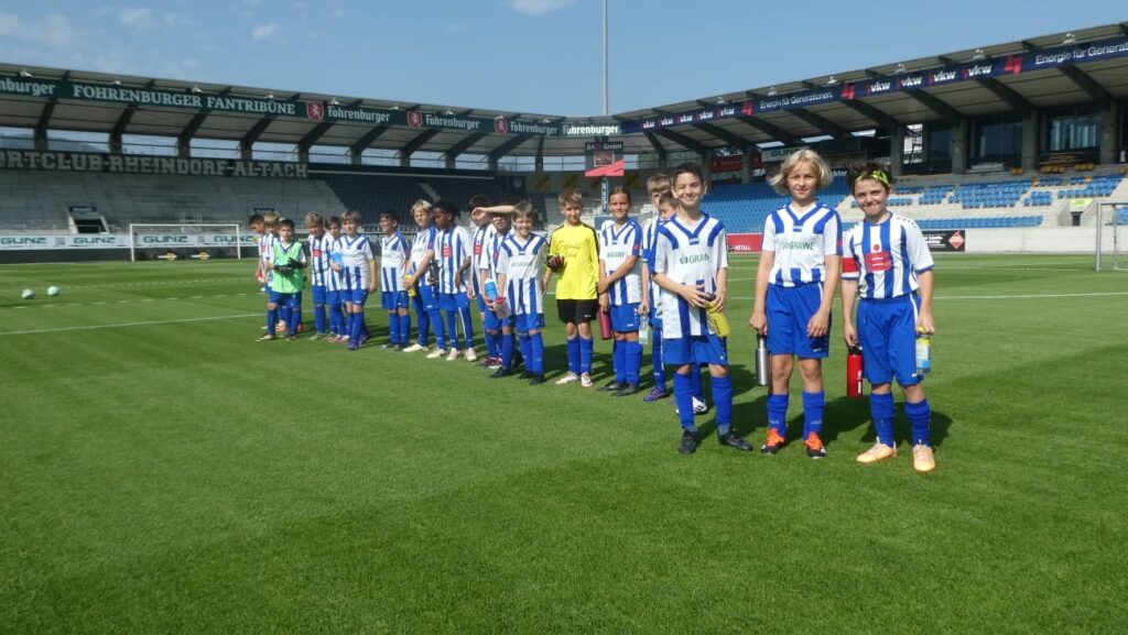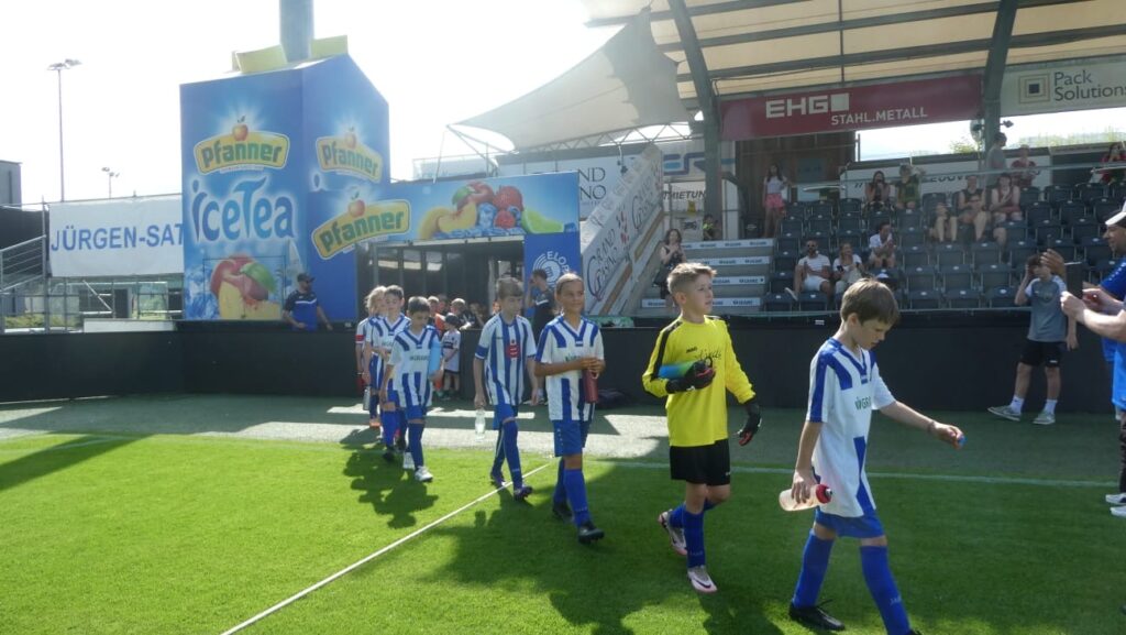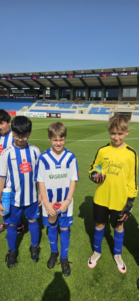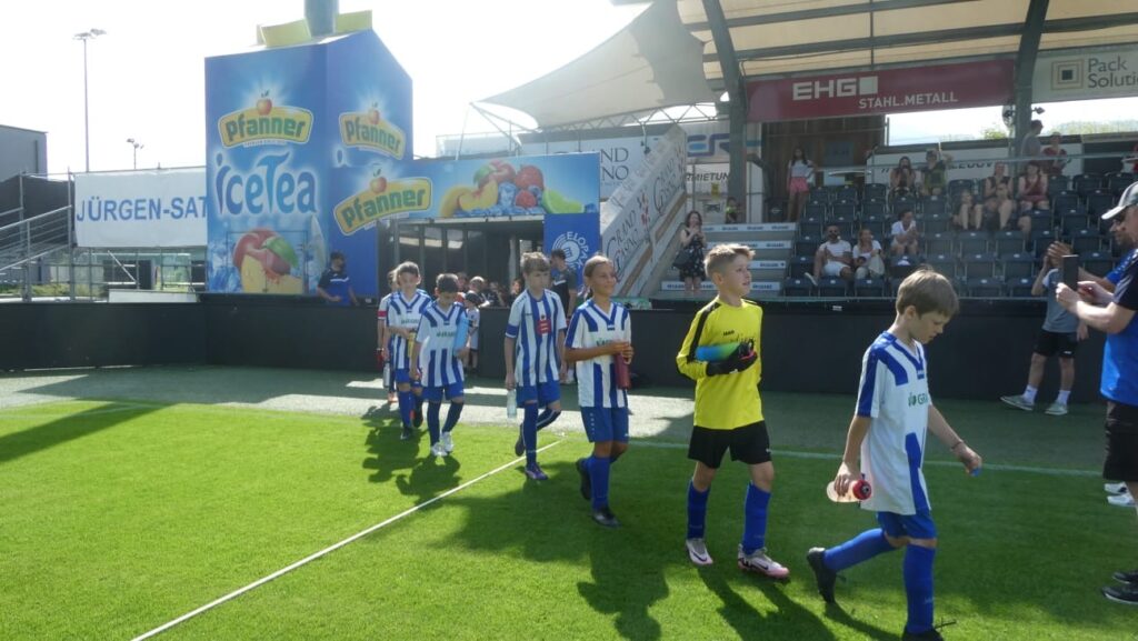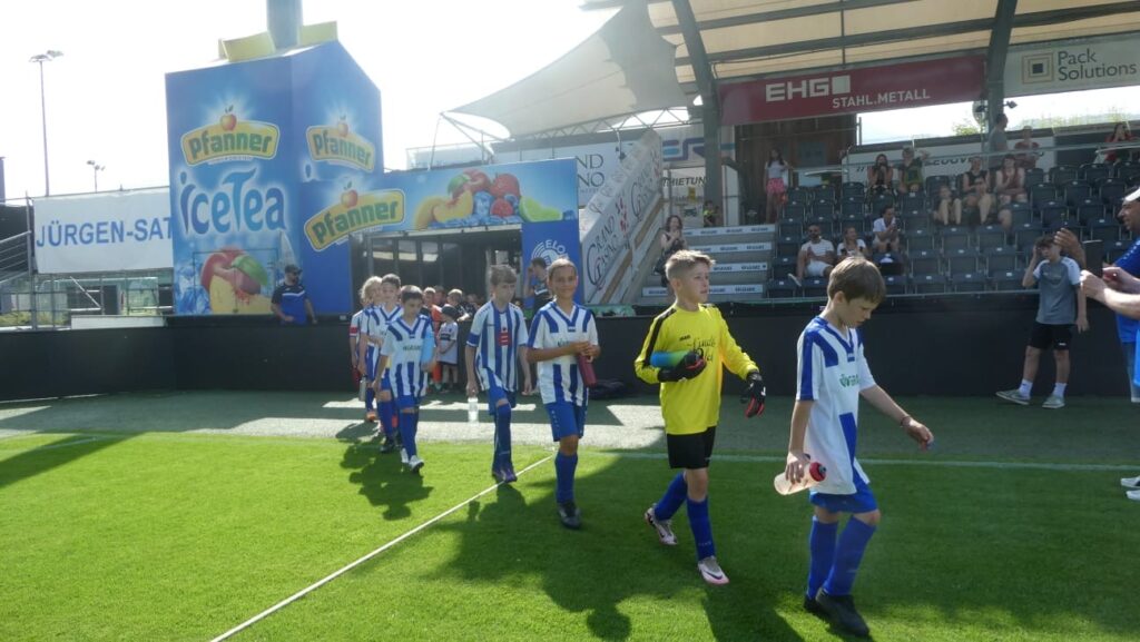Unsere U10 erlebte zum Saisonabschluss ein echtes Highlight: Das letzte Meisterschaftsspiel fand im Bundesligastadion des SCR Altach statt. Für die jungen Kicker war es ein unvergessliches Erlebnis, auf dem Rasen eines großen Stadions aufzulaufen und ihr Können zu zeigen. Die Freude und Begeisterung waren allen Kindern anzusehen – ein würdiger Rahmen für das letzte Saisonspiel!